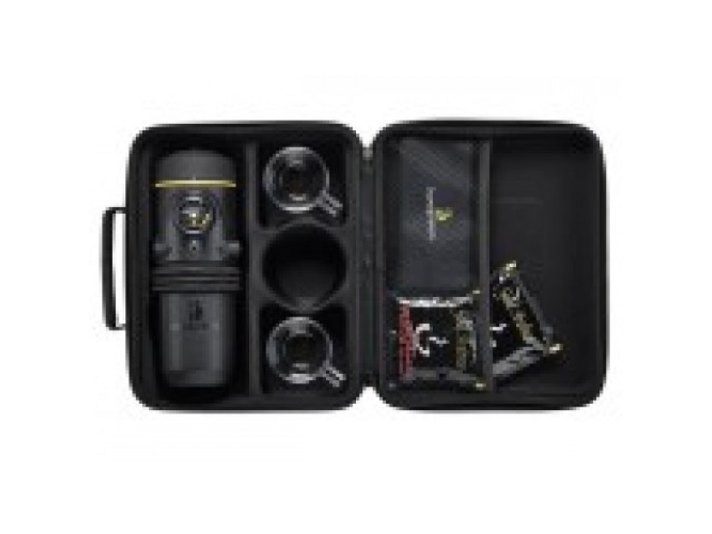 Специально для любителей кофе. Эта чудесная кофеварка для приготовления эспрессо позволит вам выпить чашечку кофе прямо в салоне автомобиля, не дожидаясь остановки в придорожном кафе. Достаточно ненадолго остановиться, подключить кофеварку к розетке 12 В в автомобиле и насладиться вкусом свежеприготовленного кофе. В набор входят две небьющиеся чашки для эспрессо, салфетка, пакетики для приготовления эспрессо (25 шт.), а также практичный футляр для хранения и перевозки набора.