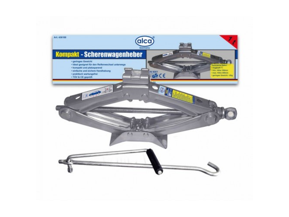 Домкрат механический 1 т, Высота подъёма: 100 — 350 мм. Вес 2.0 кг.
