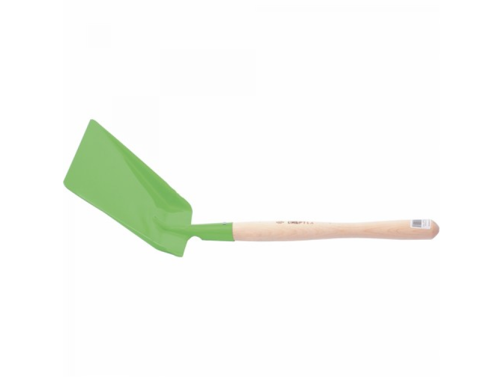 Металлический окрашенный совок. Рукоятка круглой формы, отшлифована и покрыта бесцветным лаком. Предназначен для сбора мелкого бытового мусора.