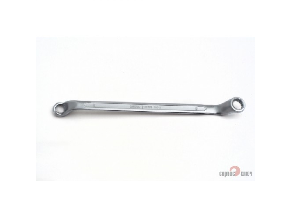 Двусторонний накидной ключ со смещением. Имеет на обоих концах 12-гранные накидные профили. Накидной профиль со смещением предоставляет более широкие возможности при работе в ограниченном пространстве. Изготовлен из высококачественной хромованадиевой (Crv) стали методом холодного штампа, тверность 40-45 HRC.