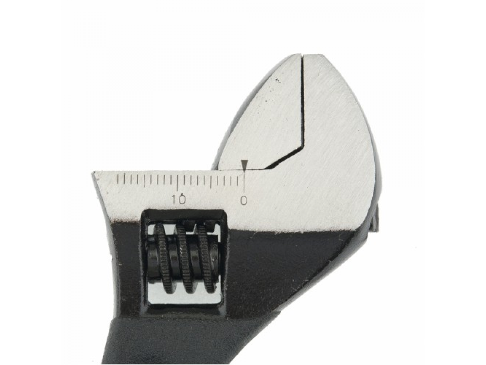 Ключ разводной изготовлен из углеродистой стали и подвергнут селективной закалке. Для разведения губок на точно заданное расстояние на неподвижной губке нанесена градуировка, а на подвижной – точечная риска. Встроенный в тело ключа червячно-винтовой механизм защищен от коррозии. Рожковый разводной ключ предназначен для монтажа и демонтажа резьбовых соединений с широким диапазоном размеров крепежа.