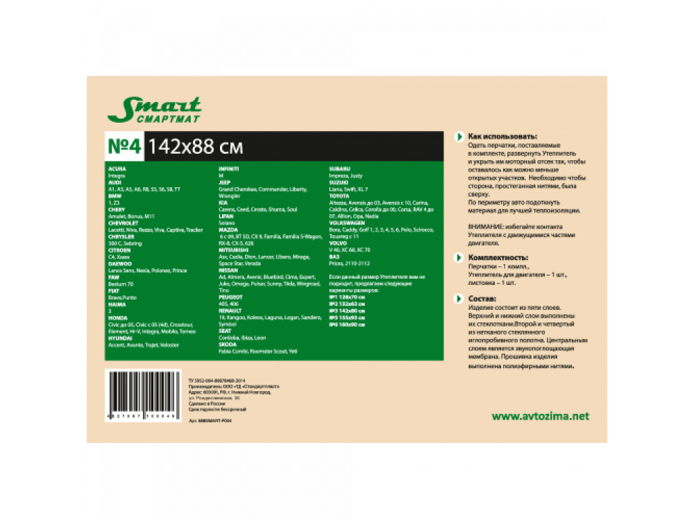 Утеплитель для двигателя Смартмат №4Утеплитель для двигателя Смартмат №4Утеплитель для двигателя Смартмат №4