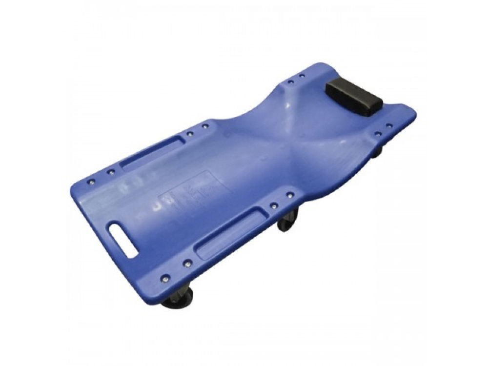 Лежак подкатной 6-ти колесный, пластиковый МАСТАК 197-00002 представляет собой мобильное ложе механика и обеспечивает удобство при проведении ремонта трансмиссии, выпускной системы и других узлов и систем автомобиля, работы по которым производятся со стороны днища транспортного средства. Применяется в автомобильных сервисах, мастерских, гаражах. Лежак подкатной ремонтный оснащен шестью независимыми колесами, имеет эргономичную профилированную поверхность, мягкий подголовник, две выемки под мелочевку и ручку для удобного перемещения. Лежак изготовлен из крепкого пластика, стойкого к маслам, топливу и другим едким жидкостям.